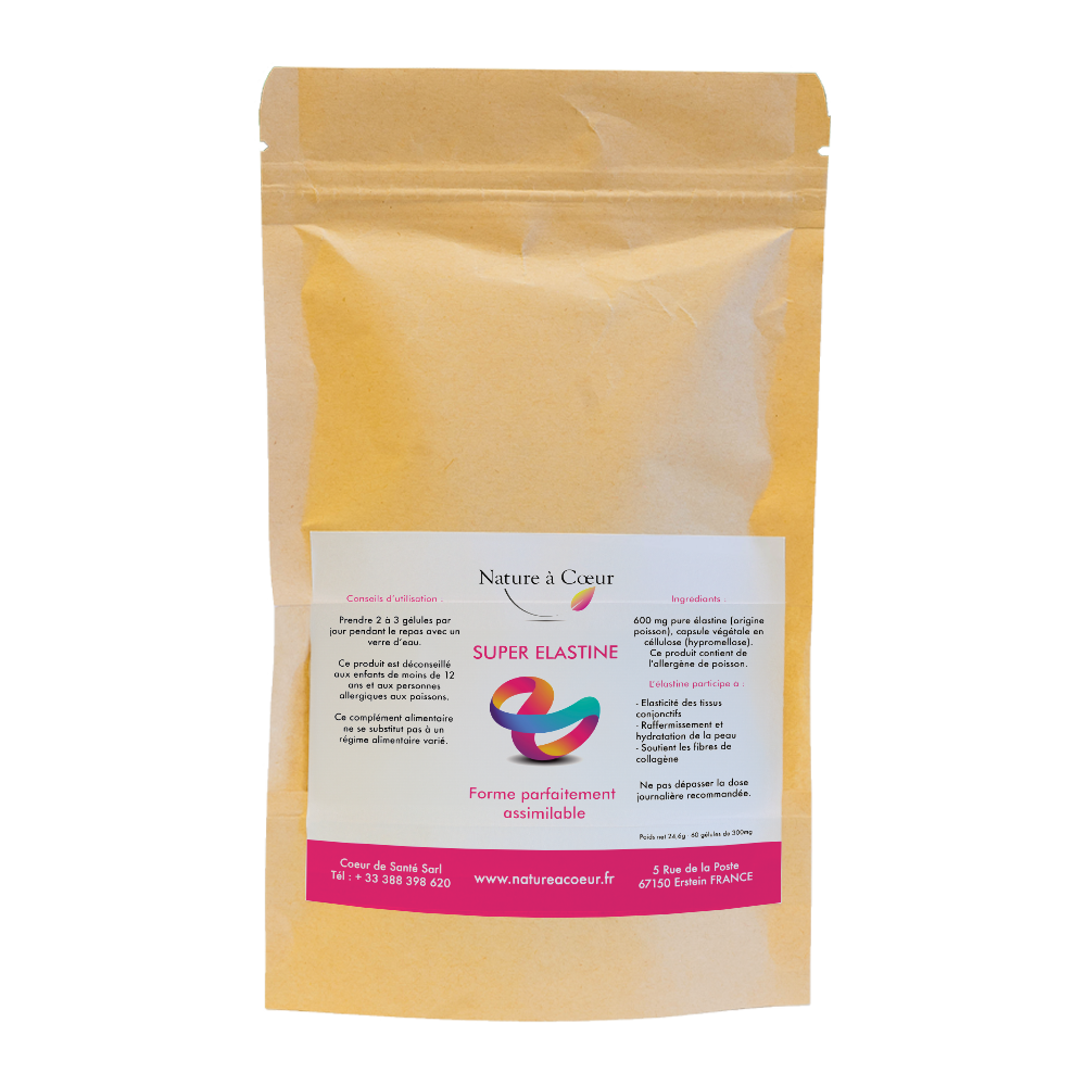 L’élastine associée au silicium bio-activé et à la vitamine C participe à la souplesse et l’élasticité des structures corporelles précitées.